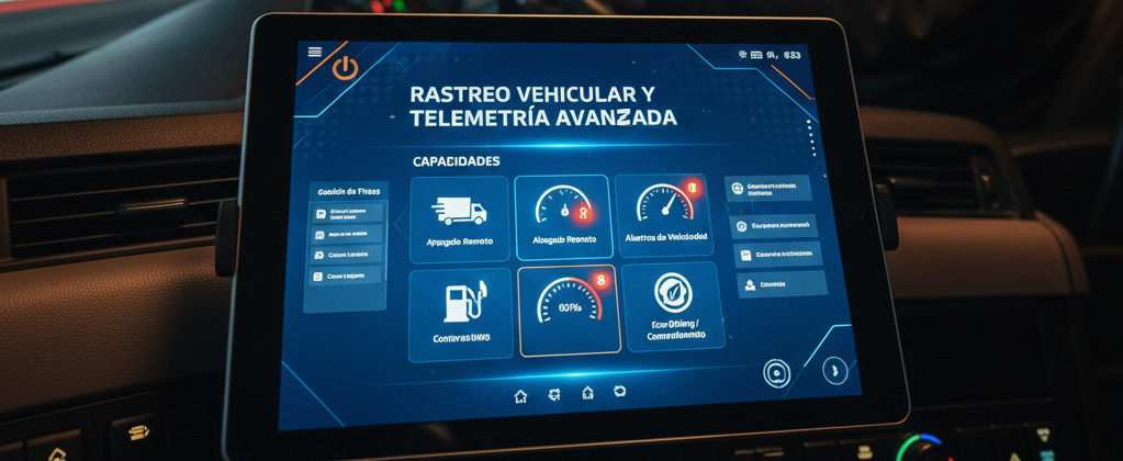 Capacidades: Apagado remoto, alertas de exceso de velocidad, control de combustible y análisis del comportamiento del conductor (Eco-Driving).